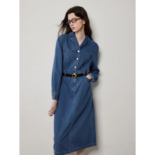 Looking for the perfect blend of casual elegance and streetwear style? This Mid-Length Denim A-Line Dress with a lapel collar offers a timeless look that’s both versatile and comfortable. Designed to flatter, this dress features a straight silhouette with a slight A-line, providing ease of movement while highlighting your natural shape. The knee-length cut and long sleeves make it perfect for transitioning between daytime casual and an evening out. Whether you’re headed to a meeting or a relaxed day with friends, this denim dress fits right in with any occasion.