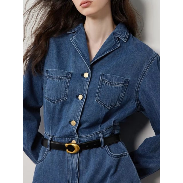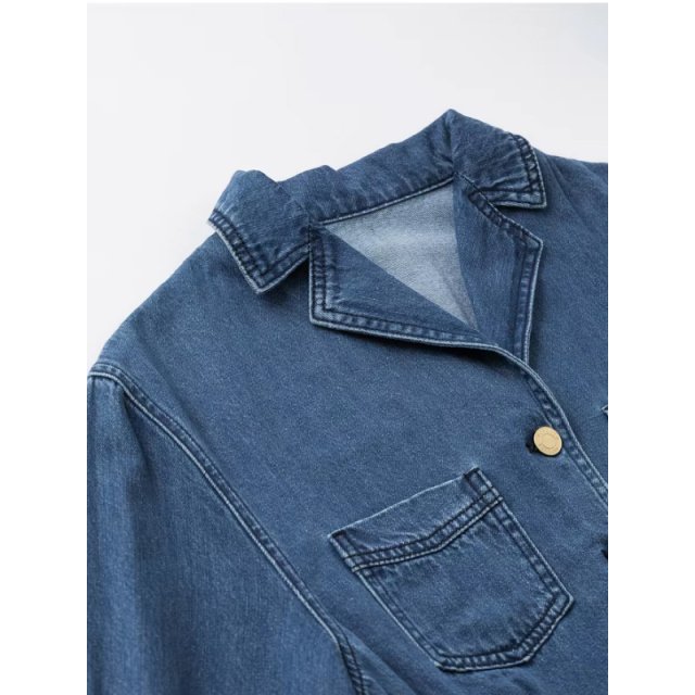 What makes this denim dress special is its versatility. It’s easy to style for different looks—pair it with boots for a casual day out or dress it up with heels and accessories for an evening occasion. The A-line silhouette complements all body types, while the denim material offers a unique, stylish vibe. The attention to detail, like the lapel collar and decorative buttons, adds a touch of sophistication to your everyday wear.